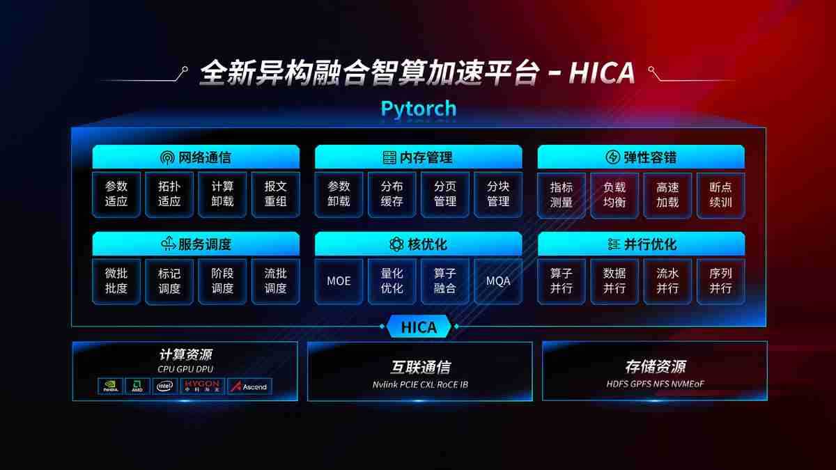 通过自研的服务层、、、、中间适配层、、、、以及调度编排算法,,,,采用数据并行、、、模型并行等多种并行方式,,,,把并行计算任务进行有效的分解,,,,使其分别由相应的软件栈和算力资源来承接。。当GPU资源变化,,,HICA可以实时动态调度计算子任务并调整模型拓扑和架构,,,,以充分聚合各种算力资源。。。。